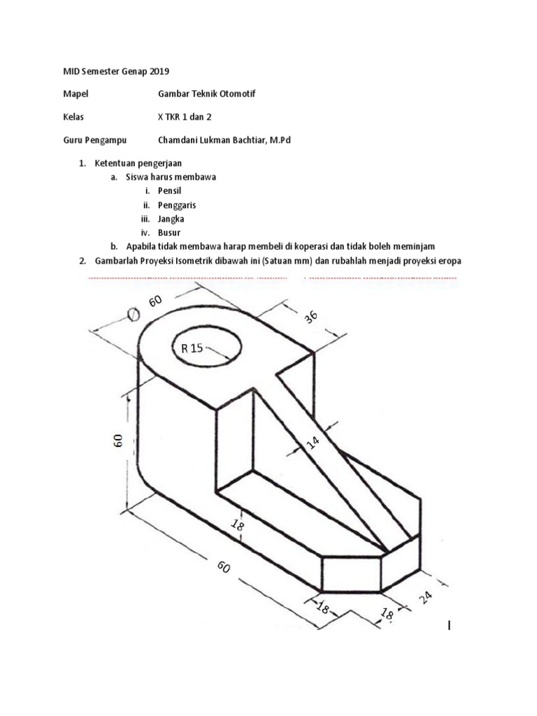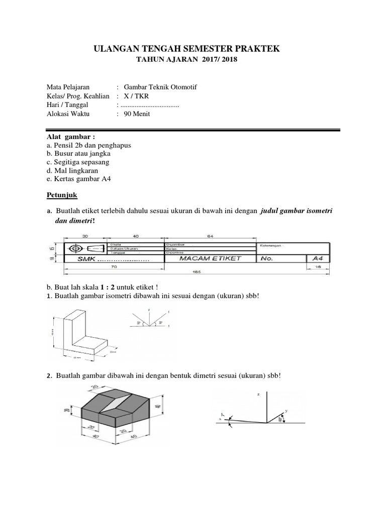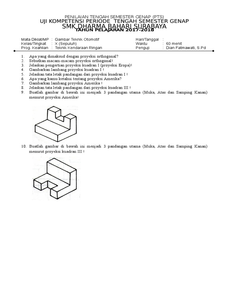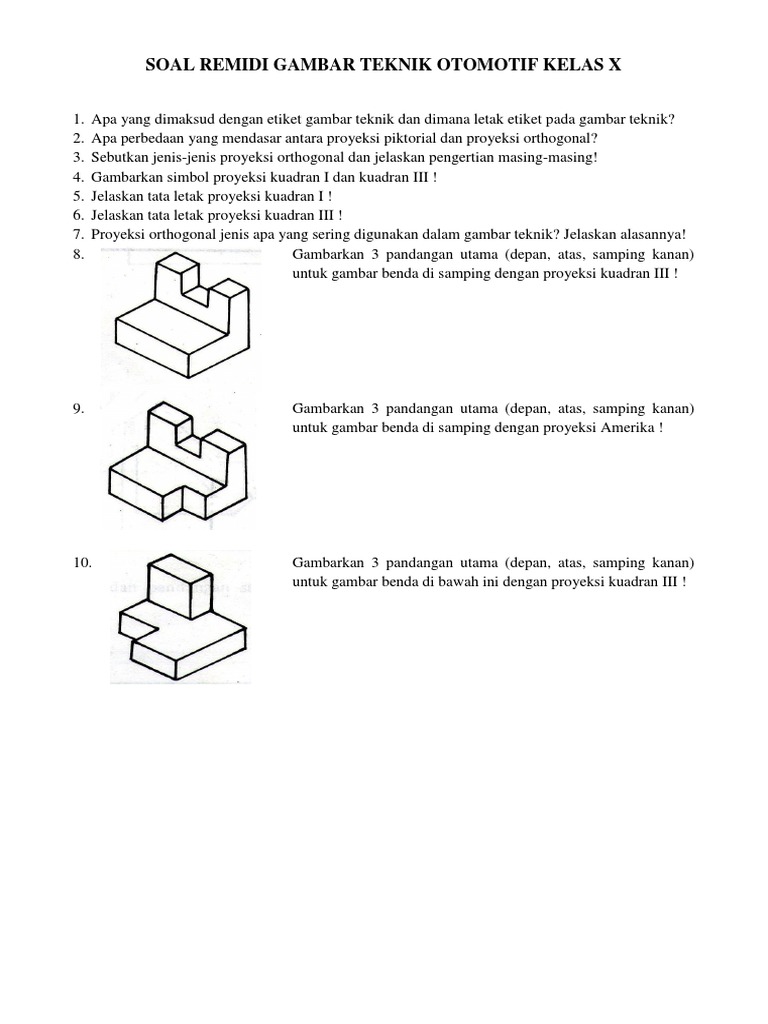 Soal Gambar Proyeksi Piktorial Teknik Otomotif Kelas X Beinyu Com