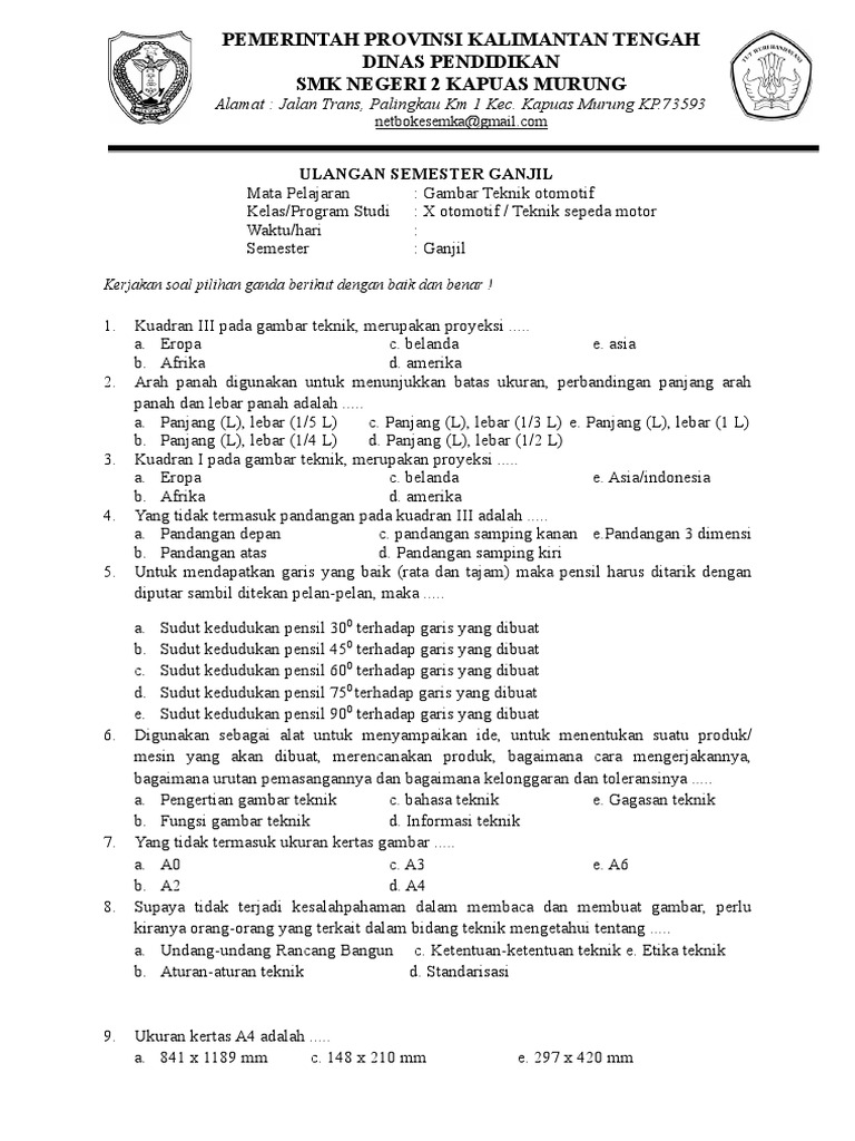 Soal Akm Gambar Teknik Otomotif Kelas 10 Semester Ganjil Dan Semester Genap Bukesi My Id