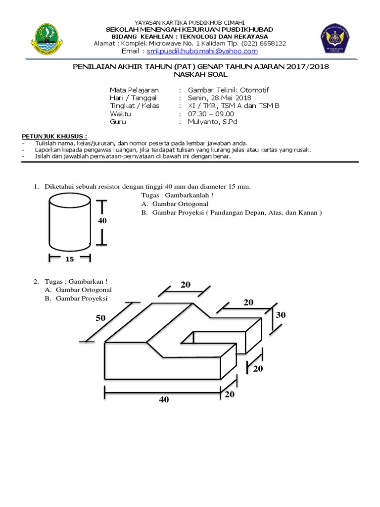 Soal Gambar Teknik Otomotif Kelas X Mid Genap 2019 Pdf
