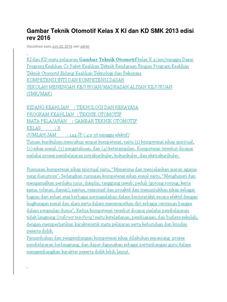 Gambar Teknik Otomotif Kelas X Ki Dan Kd Smk 2013 Edisi Rev 2016 Pdf